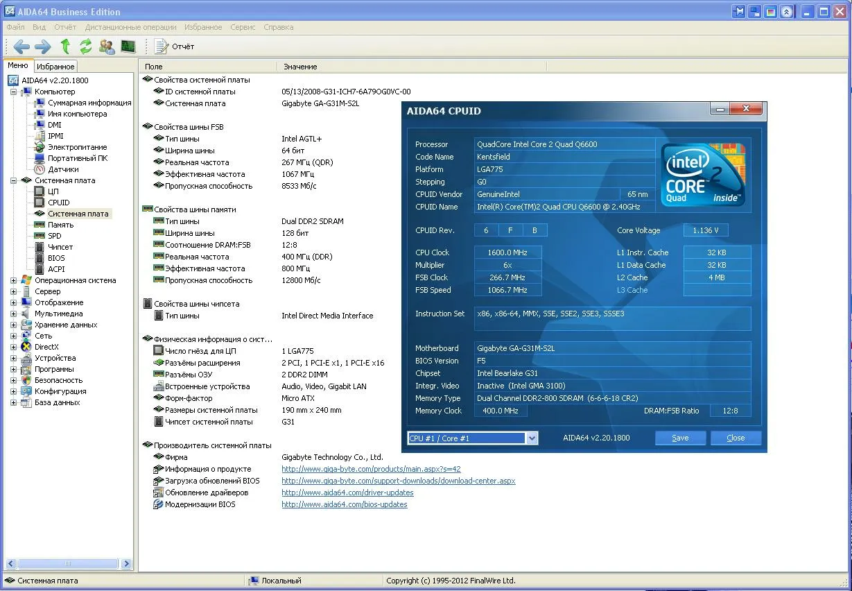 Aida64 — диагностическая утилита, позволяющая получать сведения о программном и аппаратном обеспечении компьютера.